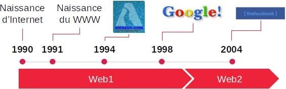 Ces propriétés peuvent peuvent être appliquées à bien d’autres cas d’usage que l’échange de valeur. En effet, lorsque l’on observe les premières années du Web, on constate que les acteurs qui prédominent aujourd’hui sont apparus dans la première moitié de sa vie. Ces entreprises qui font le Web sont les mêmes depuis le début (bien que certaines aient disparu) :