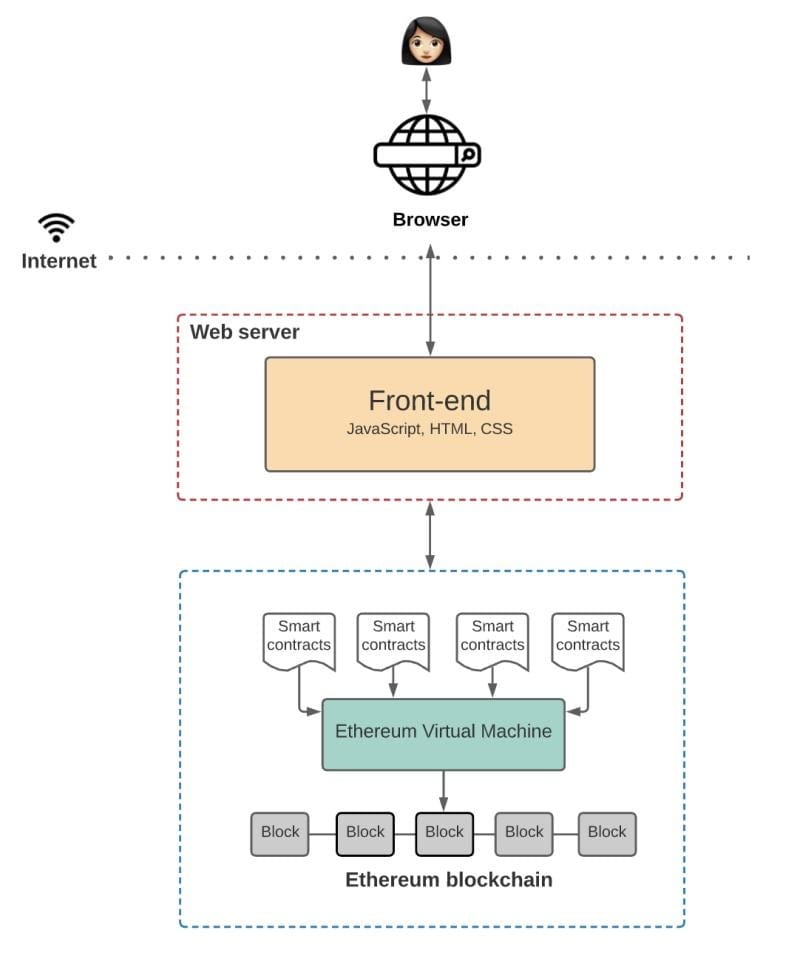 Pour apporter les nouveaux cas d'usage dont je parlais plus tôt, une nouvelle forme d'applications apparaît avec le Web3 : les dApp - Decentralized Applications. Ces applications d'un nouveau genre sont bâties sur des technologies décentralisées.